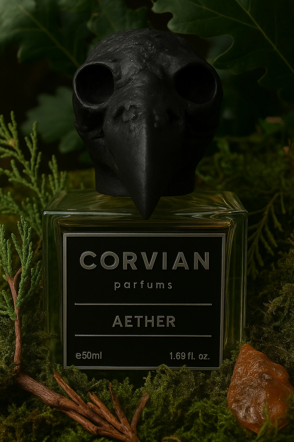 Az Aether nem egy illat. Ez a levegő architektúrája a naplemente után: száraz fény, meleg gyanta és hosszú csend — annak pecsétje, aki a távolságot is viselni tudja.